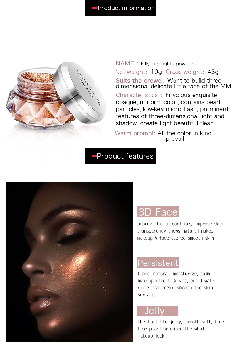 Face Body Beauty Jelly Gel color Private label Makeup Highlighter